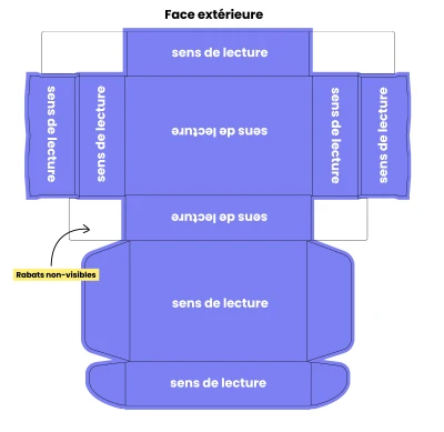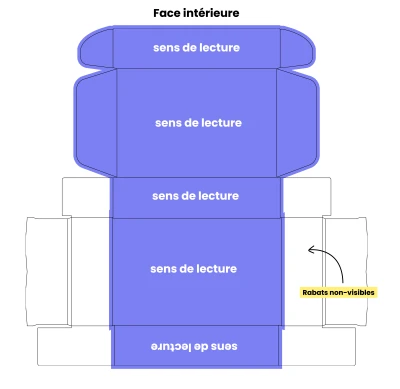 L'emballage étant un produit 3d, qui nécessite du montage, il est important de ne pas mettre d'encre aux endroits qui seront repliés à l'intérieur et cachés.